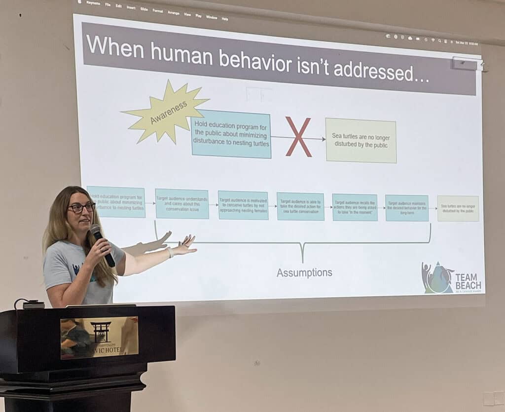 Guided by a behavior change action plan template and with support of the workshop organizers, each group conducted an in-depth analysis of each case study—examining the core issues, target audiences, and behavioral science principles needed to develop effective and customized interventions. By the workshop’s end, attendees had gained valuable insights from behavior change experts and successfully applied these strategies to real-world challenges faced by sea turtle conservation professionals worldwide.