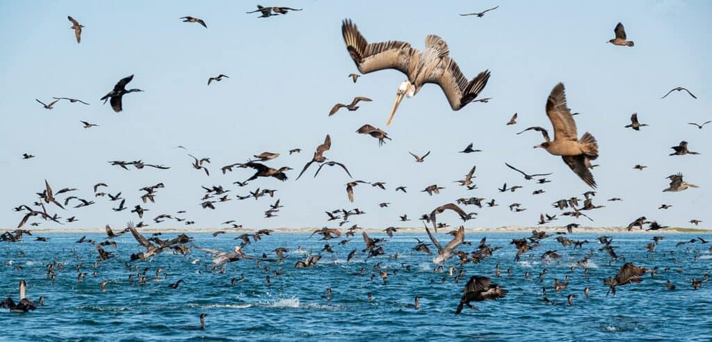 At the start of our trip, we also take two days to explore the Sea of Cortez, one of the most productive and diverse seas on the planet. From our base in the charming town of Loreto, we will make private boat excursions to search for wildlife and enjoy the outstanding landscapes of the Gulf of California. Here we will specifically be looking for blue whales, the largest animals ever to exist on Earth. Along the way we should see a variety of seabirds and other marine mammals, such as fin whales and large groups of dolphins.