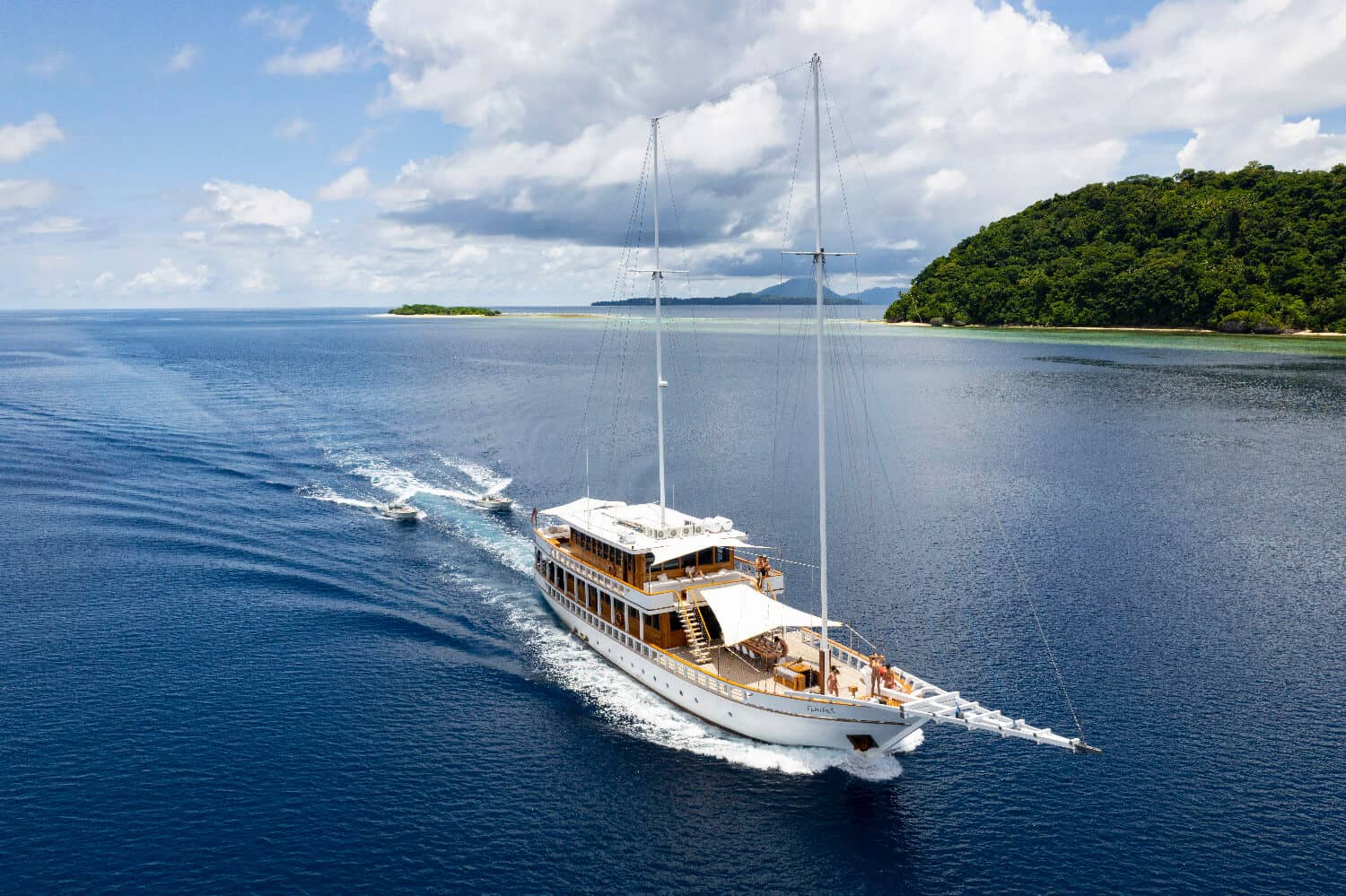 This luxury liveaboard journey was designed to showcase the Coral Triangle's astounding variety of reef species and coral habitats through snorkeling or scuba diving at world-class sites. In addition to exploring thriving marine ecosystems, onboard cetacean experts from Planet Deep will lead conservation-focused “whale patrols” while traveling between locations, during which sightings of blue, Bryde’s, and Omura’s whales are possible.