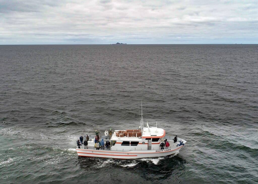 Our Boat: The iconic, 60-foot Salty Lady. An exceptionally stable vessel with ample viewing deck space and comfortable indoor amenities. Perfect for offshore adventures.