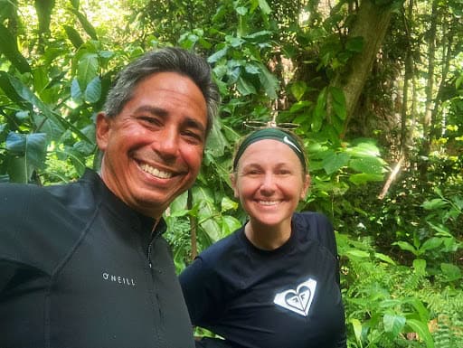 Raymond Boland with Rosie Jeffrey, Oceanic Society’s manager of strategic partnerships (and expedition leader), posing for a photo in the jungles of Palau. © Raymond Boland