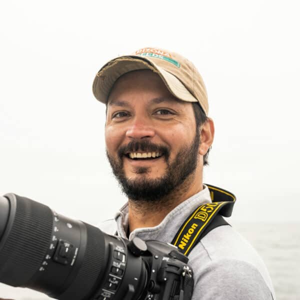 “We’ve had humpbacks circle the boat multiple times, hang directly beneath the hull, and surface just a few feet away from guests,” says Oceanic Society’s own veteran naturalist, Chris Biertuempfel. “Some linger for 30 to 45 minutes. They’re clearly aware of our presence, and they seem curious.”