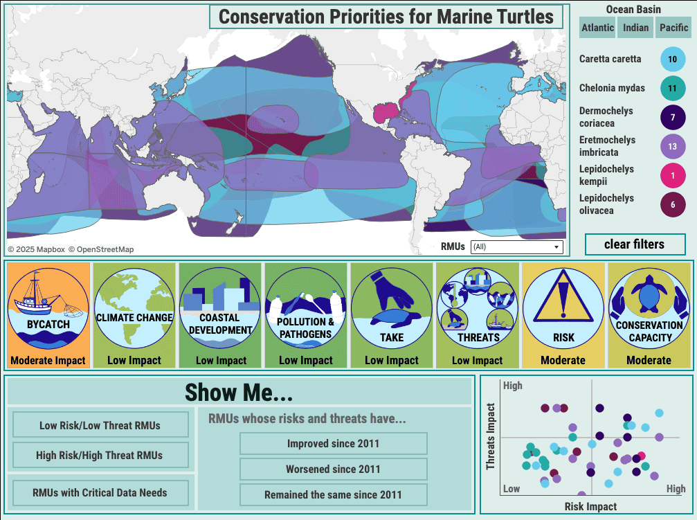 A new interactive dashboard allows users to explore the data from the study to better understand the specific risks and threats that impact each sea turtle population.