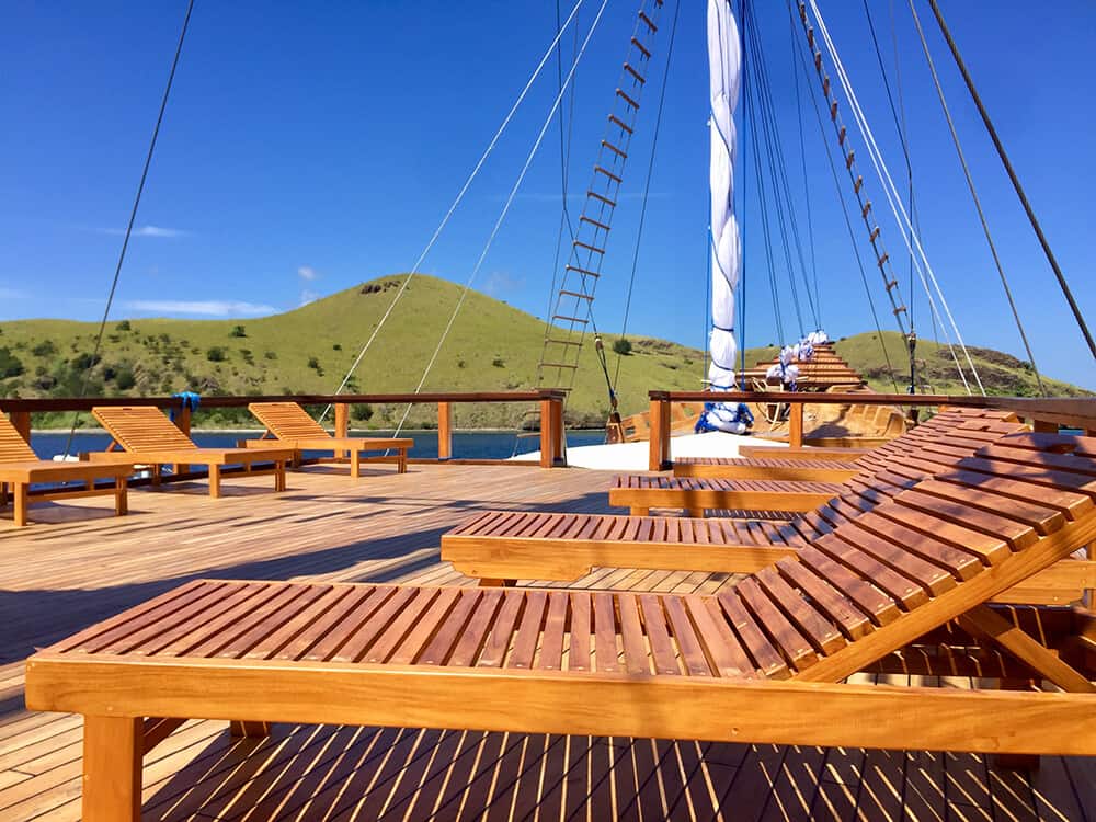 Travel comfortably aboard a traditional Indonesian schooner with spacious common areas and two tenders with sturdy dive ladders.
