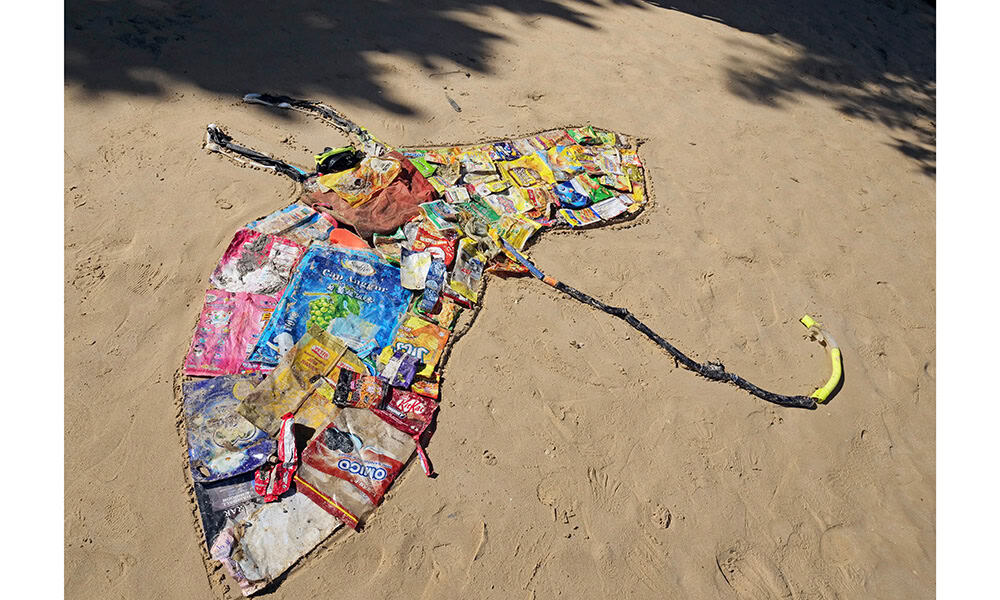 A manta ray made of marine debris was one of three elements of the winning artwork created by Marine Research Foundation following their cleanup in Sabah, Malaysia